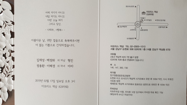한국석회석사업협동조합 김재성 이사장님의 차남 결혼식을 다음과 같이 알려드립니다.