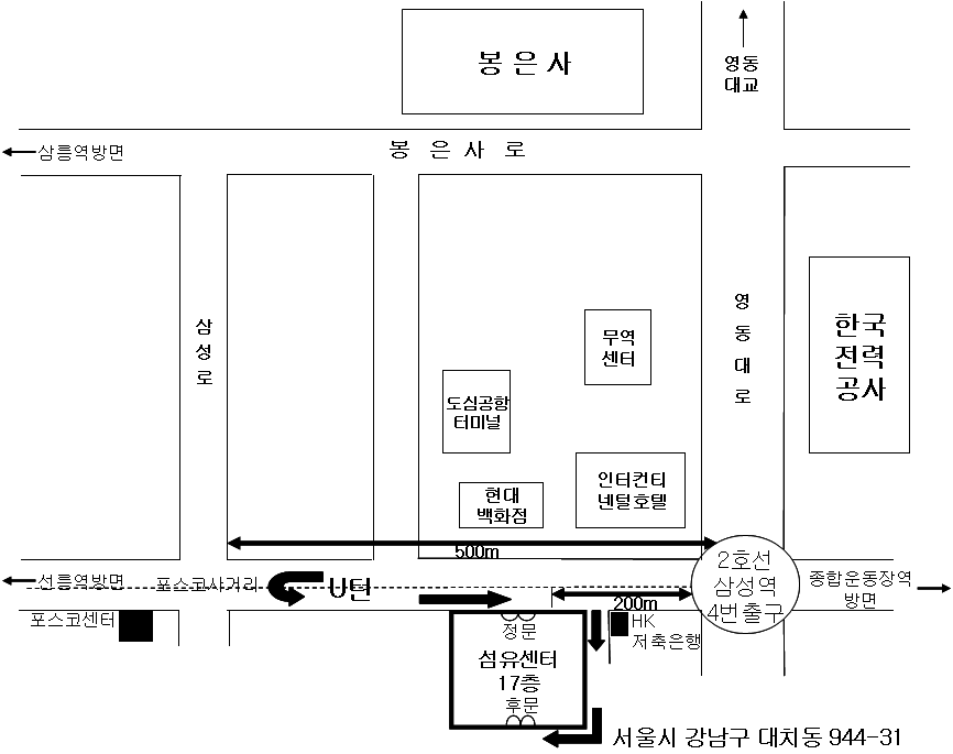 ? 일 시 : 2008년 2월 16일(월) 오전 11시 ~ 13시 ※ 등록 10:30 ~ 11:00 ? 장 소 : 섬유센터 17층 다이아몬드홀 (서울시 강남구 대치동 944-31) ? 부의사항 : 1. 2008년도 사업보고 2. 2008년도 감사보고 및 결산보고 3. 2009년도 사업계획 및 예산보고 4. 임원선임의 건 5. 기타 토의사항