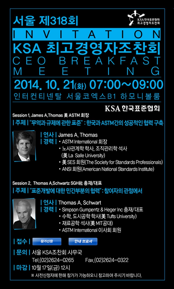| 제 318회 한국표준협회 최고경영자조찬회 - 2014. 10. 21(화) |