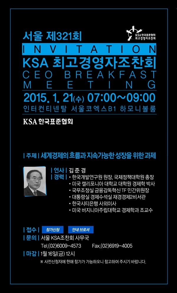 | 제 321회 한국표준협회 최고경영자조찬회 - 2014. 1. 21(수) |